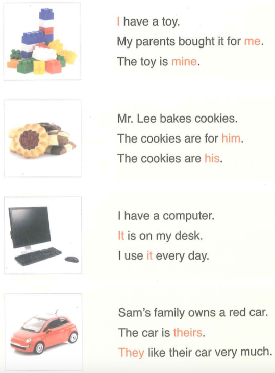 Hãy xem các loại đại từ trên được sử dụng trong những ví dụ sau: